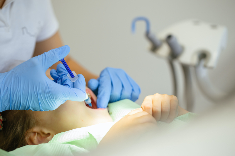 Việc kiểm tra nha khoa, cạo vôi răng và đánh bóng, và/hoặc loại bỏ vết ố bằng luồng không khí thường sẽ được tiến hành trước tiên.