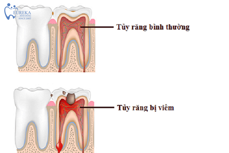 Tuỷ răng khi vị viêm và tuỷ răng khi bình thường